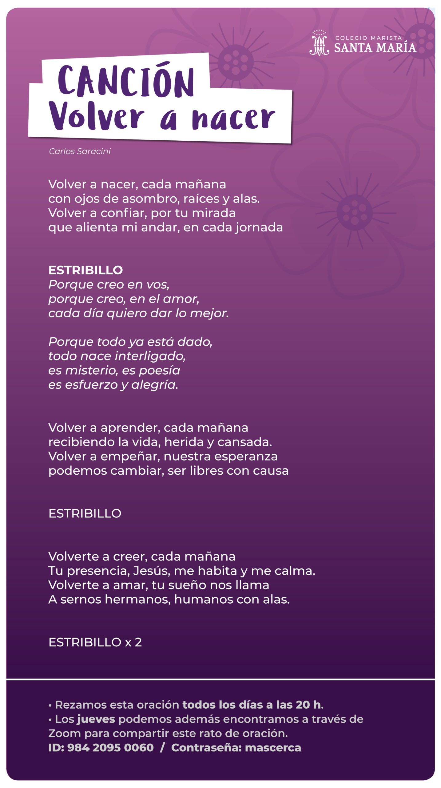 Queremos acercarles la oportunidad de encuentro en familia, con la comunidad del colegio y con Dios para renovar fuerzas en este tiempo que nos hace transitar por situaciones complejas y desafiantes.